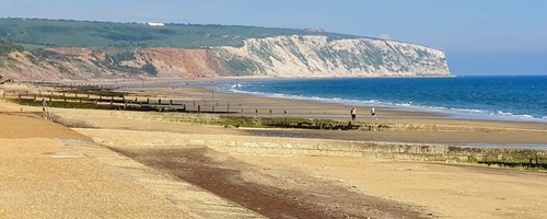 Part of the 5 mile long sandy shoreline of Sandown Bay extending south to Shanklin